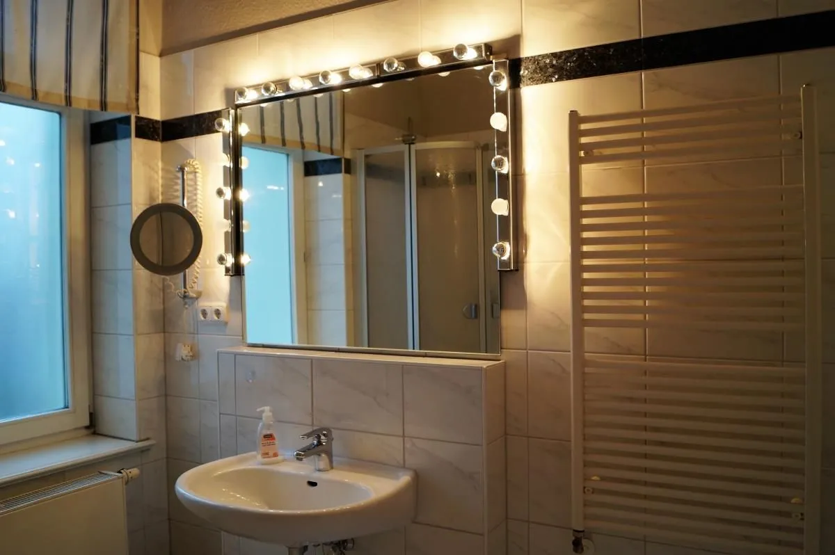 Die Großzügigkeit der Wohnung spiegelt sich auch im Badezimmer wider. Hier stehen dem Gast ein Duschbad mit WC sowie zusätzlich ein Gäste-WC zur Verfügung. Ein Kosmetikspiegel sowie eine Handtuchhalter-Erwärmung runden das Angebot zusätzlich ab.