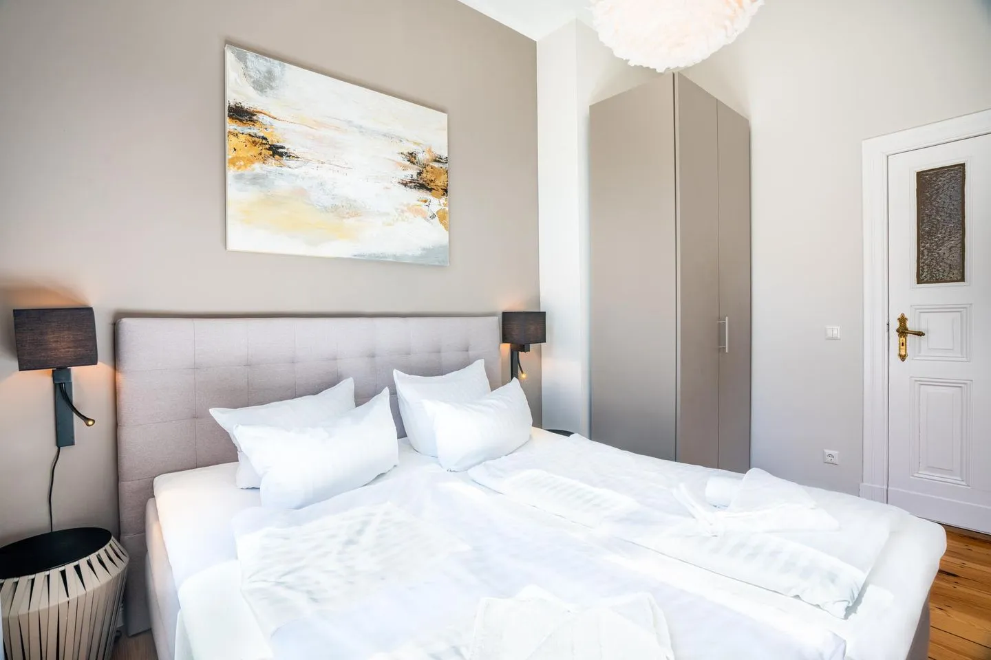 Im Schlafzimmer sorgt das Boxspringbett für erholsame Nächte. Für zwei zusätzliche Gäste kann das hochwertige Sofa im Wohnzimmer aufgebettet werden.