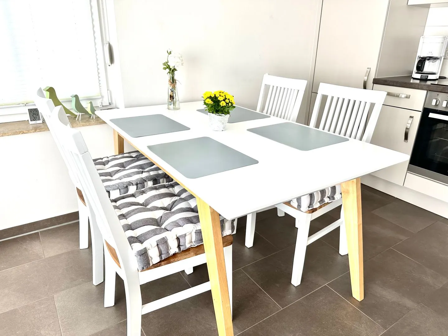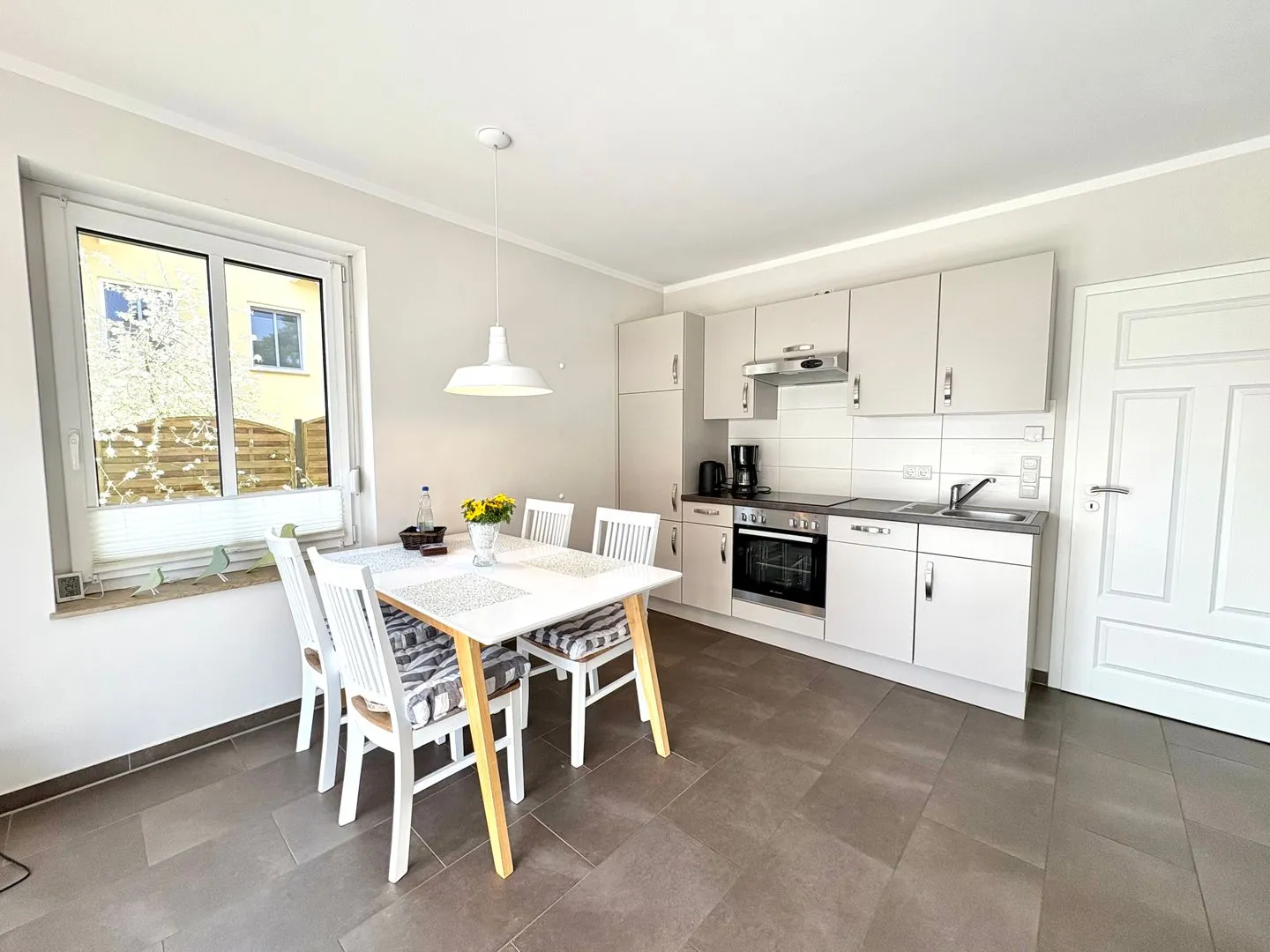 Die voll ausgestattete Küche lässt keine Wünsche offen: Herd, Backofen, Mikrowelle, Kühlschrank mit Gefrierfach, Spülmaschine, Kaffeemaschine, Wasserkocher, Toaster sowie ausreichend Geschirr, Besteck und Küchenutensilien stehen zur Verfügung. Die Erstausstattung umfasst zudem Reinigungsmittel und Geschirrhandtücher.