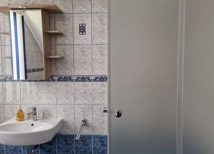 Das Badezimmer des Ferienhauses ist sowohl funktional als auch komfortabel gestaltet. Es verfügt über eine Dusche, eine Badewanne und ein WC, alle ausgestattet mit Wasserspardüsen, die umweltbewusstes Verhalten fördern und gleichzeitig vollen Komfort bieten. Hier können Sie nach einem langen Tag entspannen und neue Energie tanken.