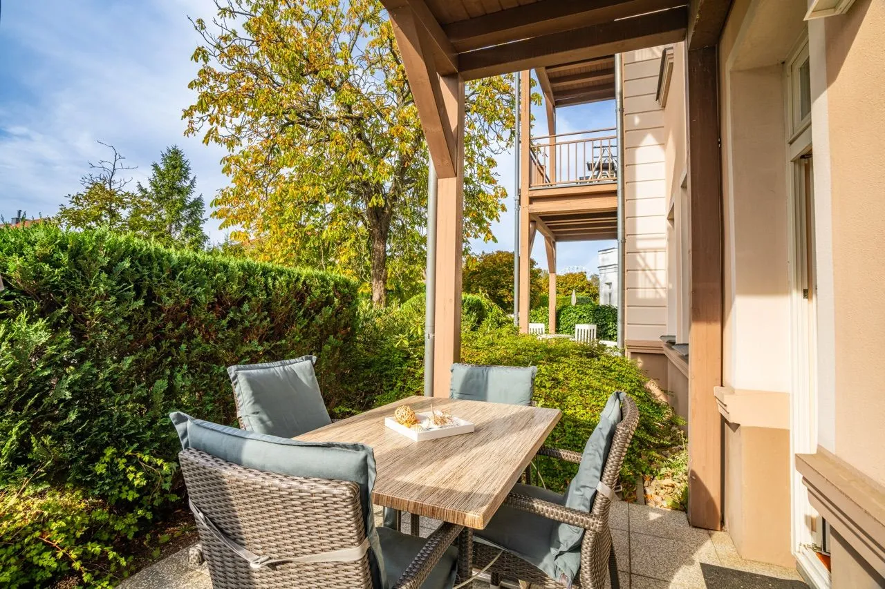 Die Wohnung befindet sich im Erdgeschoss der Villa Bismarck. Von hier sind die Geschäfte, Bäcker, Restaurants und Cafés bequem fußläufig zu erreichen (max. 5 Gehminuten). Der Strand befindet sich in nur 300-Meter Entfernung.