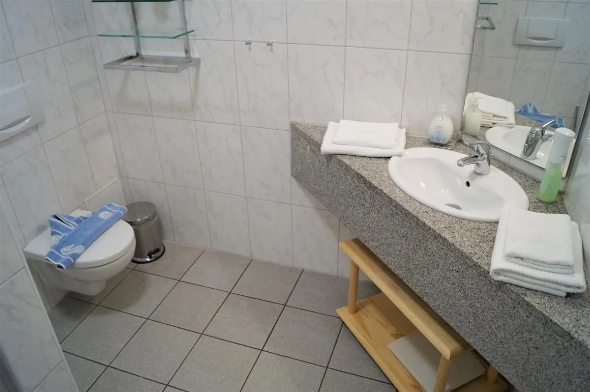 Das geräumige Badezimmer mit Dusche, Waschbecken und WC ausgestattet, rundet das Angebot dieser schönen Ferienwohnung ab.