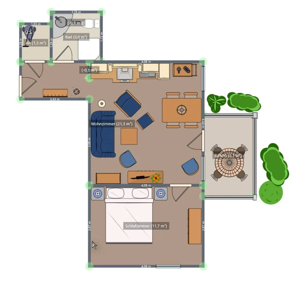 Das Apartment bietet Schlafmöglichkeiten für bis zu 4 Personen (Doppelbett im Schlafzimmer, Doppelschlafcouch im Wohnzimmer).