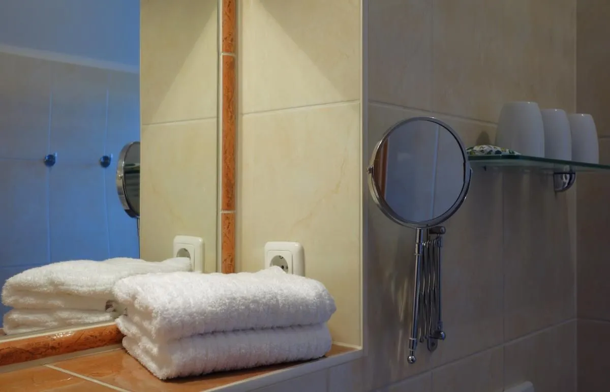Das Badezimmer ist mit Dusche und WC sowie einem Waschbecken ausgestattet. Darüber hinaus sind ein Fön sowie ein Kosmetikspiegel vorhanden.
