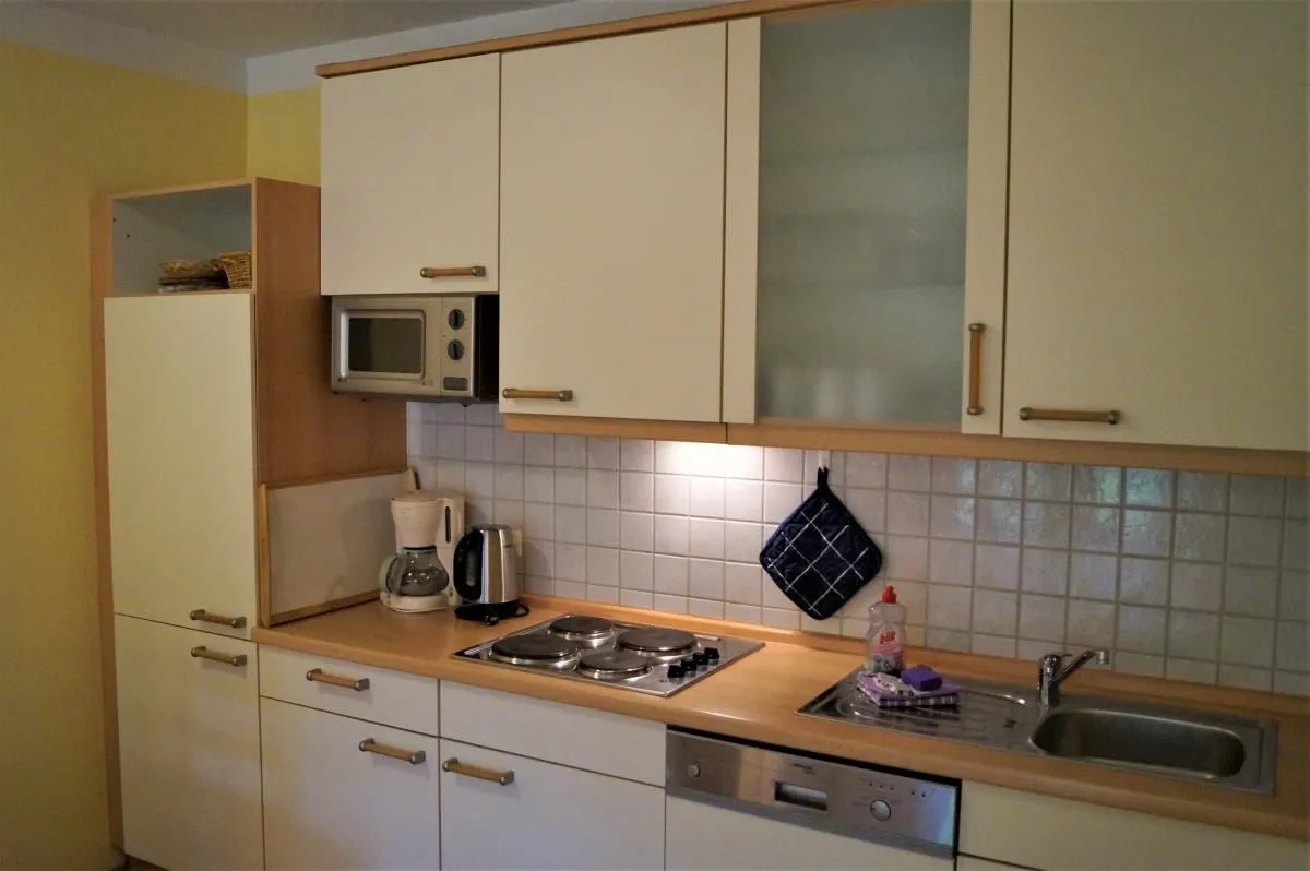 Wohnen und KochenDie 54m² große Erdgeschosswohnung bietet ausreichend Platz für die vierköpfige Familie. Es gibt einen großzügigen Wohnraum mit Sitz- und Essecke sowie integrierter Einbauküche. Hier sind alle Gerätschaften vorhanden, um sich im Urlaub selbst verköstigen zu können. Im Wohnbereich sorgt ein moderner Flachbild-TV für gute Unterhaltung.