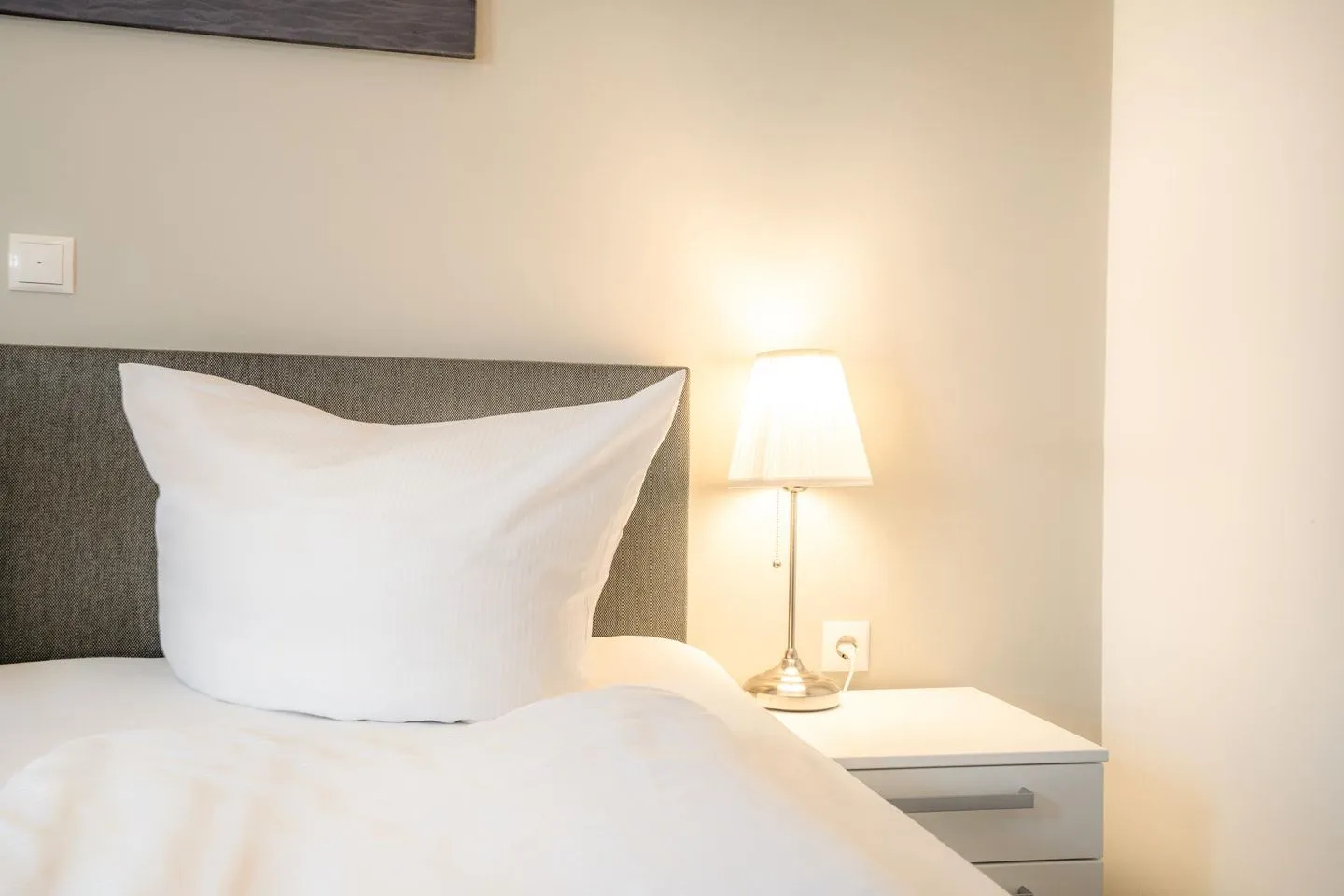 Es gibt ein separates Schlafzimmer mit Doppelbett und eins mit zwei Einzelbetten.